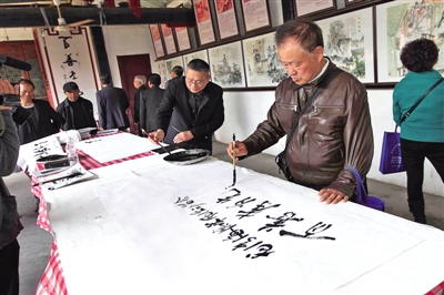 昨天,在龙湾区蟾钟文化礼堂,诗词爱好者们结合蟾钟村“孝”文化建设,现场泼墨作诗。当日,来自我市各县(市、区)的诗词楹联学会130多名会员走进龙湾区海滨街道,参观蟾钟文化礼堂、汤和庙、忠烈观和北沙文化公园等,感受龙湾深厚的文化底蕴和改革开放三十多年的沧桑巨变。