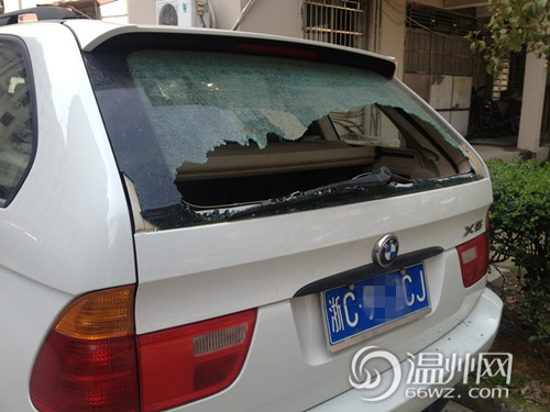 图为被砸坏的宝马车