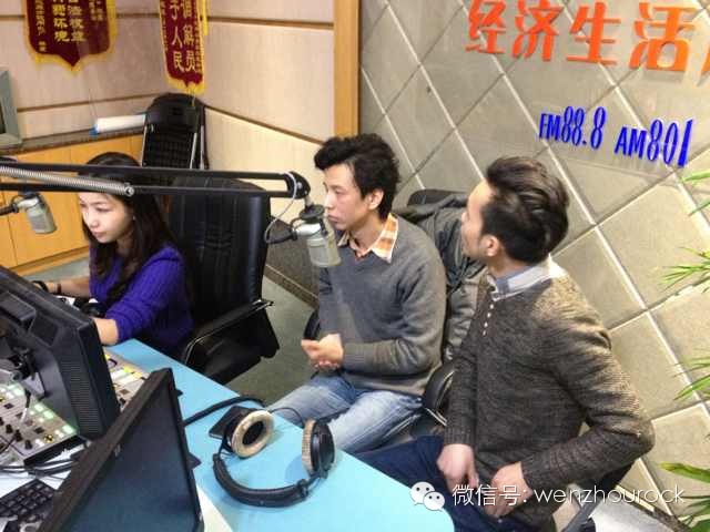 从左至右恶之花吉他手张鸣温州电台主持小米