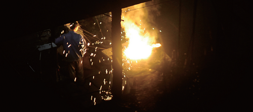 此时的机械厂灯火通明,在靠近省道一侧,记者看到机械厂里有工人正在炼钢(如上图所示),炼钢炉一直发出“滋滋”声响,有点像防空警报的声音,令人头皮发麻。到次日凌晨1时,机械厂持续作业,他们不断发出敲打金属的响声,在宁静山区的夜晚显得尤其刺耳。