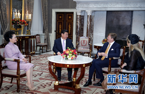 威廉-亚历山大国王热烈欢迎习近平访问荷兰。他高度评价荷中关系发展,表示荷兰王室长期同中国保持友好交往,我的母亲贝娅特丽克丝任女王期间多次访华。荷兰愿意做中国的好伙伴,希望加强两国务实合作和人文交往,相信习近平主席这次历史性访问必将推动荷中关系进一步发展。