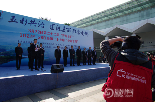 据了解,我市大小河流共有14392条,总长18650公里。市政府副秘书长、市水乡办主任林孝悌在活动现场介绍,目前,我市五水共治开局良好,截止2月底,全市在建治水项目达到203项,1-2月完成投资12.7亿元,且全市总投资590亿元的治水项目已被列为浙江省防洪水、保供水的建设规划。2014年,治水工作将围绕城乡生活污水治理、水乡示范区建设、重大防洪排涝、珊溪水源保护、两河整治、围垦造地等六个方面寻求突破。积极呼吁社会和群众齐心协力,广泛参与到治水行列,共同助推美丽浙南水乡建设。