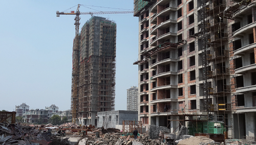 3月21日,在下垟郑村村民的带领下,记者来到位于新联货运中心西侧的安置房建设工地,目前6幢安置房有4幢已完成主体建设。