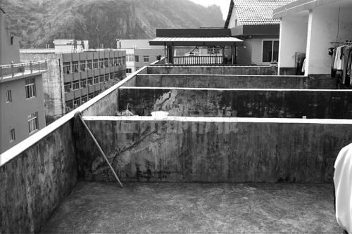 小飞的同学小羽(化名)说,当天下午4时许,他在路上碰到返校的小飞,随后两人一起去小羽家玩。小羽家租住房离学校不远,是一幢5间5楼落地房,小羽家租住在最边间5楼。这幢落地房的5楼都是大阳台,共有5道高约1米、宽约0.2米的水泥墙。距其3米多的地方,是一幢同样结构、同样高低的落地房。从小羽家阳台看过去,两幢房子的阳台似乎连在一起。