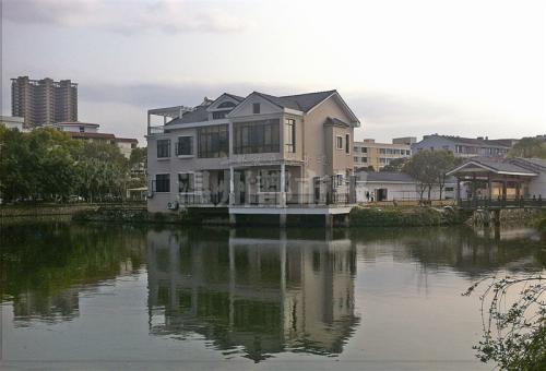 据附近居民介绍,公园的土地属于当地一名企业家,经常看到他的家人出入该座“别墅”。“别墅”高两层,东边临河,西边有一大片绿地,绿地南北各建有一层平房和河边长廊。通往“别墅”的通道上了锁,普通游客无法进入别墅所在的区域。