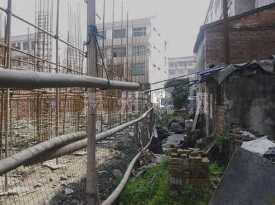 右侧的两层砖瓦房是尚先生的辅助房,而左侧是其邻居筹建的居民楼工地。