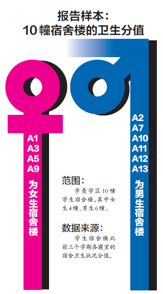 根据各楼栋的总体水平分析,以女生宿舍为例,A9楼的优秀率最高,A2楼优秀率最低。温州大学步青学区副主任何毅介绍,A9楼是女生宿舍,且多居住着大一和大二等低年级学生。