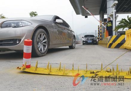 冲卡逃费的大货车驾驶员可要注意了!绕城高速公路的3个收费站出口已装上了防冲卡神器——阻车器,若再撞击收费站的升降栏杆,即要被“阻车器”戳车胎了。