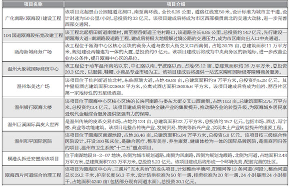 6、温州银行瓯海大楼:位于瓯海中心区核心区块的长浃河南路与娄东大街交叉口西南侧,占地10.3亩,建成后将加快金融产业的提升,推动服务业的转型升级。