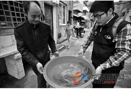 昨天,温州绿眼睛环保组织工作人员赶赴龙湾区瑶溪街道,从刘先生家中将一条重3.65公斤,长82厘米的娃娃鱼(大鲵)接走,准备放生在泰顺乌岩岭自然保护区。这条娃娃鱼是刘先生近日在瑶溪水库捕鱼时无意发现的,他当时不确定这条鱼是否属于保护动物,就打电话向环保组织求助。据介绍,野生娃娃鱼是国家二类保护水生野生动物,贩卖它属违法行为。