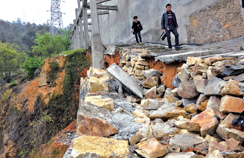 昨天,瑞安市塘下镇西岙村,通往山上两座公墓的山路由于年久失修,坍塌比较严重。记者郑之越/摄