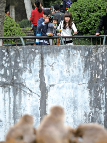 昨天中午,在温州动物园猴山观赏区,不少游客在向猴子投喂食物。据了解,每到节假日,动物园的工作人员就得特别注意动物饮食,因为它们容易被过度投喂而出现吃撑等“假期病”。