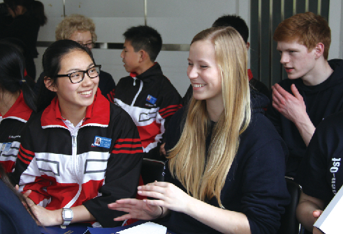 经过前期的邮件交流和短暂的参观校园环节,在昨天下午的欢迎仪式开始前,20名德国学生与温州小伙伴已经迅速熟络。初二学生林珑认真地用英语回答着小伙伴对于学校课程的提问,满脸兴奋。林珑告诉记者,为了让德国客人顺利适应温州生活,她对其喜好和生活习惯先行摸了摸底,“小伙伴是个素食主义者,喜欢寿司、意大利面、披萨,我好几天前就特地交代我妈妈好好准备一下了。”