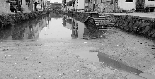 古城墙内,一条劣五类河贯穿而过