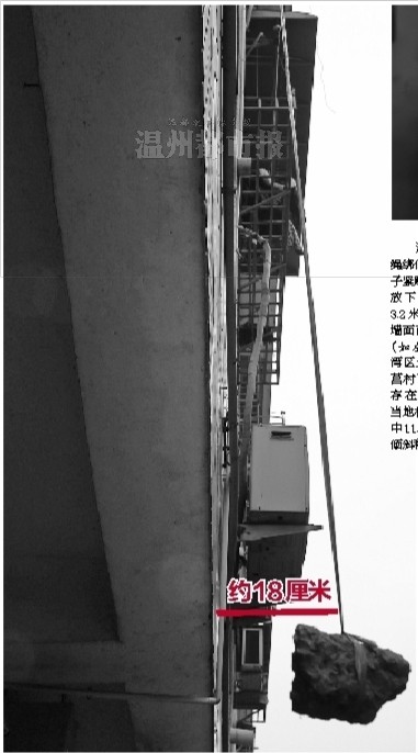 温都讯 用绳绑住砖块,把绳子紧贴墙面从4楼放下,到离地面3.2米时,绳子离墙面已约18厘米(如左图)……龙湾区永中街道新莒村的部分楼房存在倾斜问题。当地村民介绍,其中11和14两幢的倾斜程度最严重。