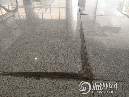 此外,这些出现裂缝的外墙周边路面都出现了不同程度的破损,有的花岗岩隆起,有的发生了断裂,而两处原本直行的残疾人道也凹凸不平,破损严重。除了火车站外墙区域多处开裂外,在一楼候车室内,多处原本光滑平整的大理石地面竟如波浪一般,上下起伏。在该候车室的左侧,多块大理石翘起了2—3厘米高,边缘似乎还有明显的修补痕迹。