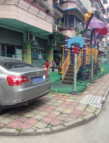 2009年的时候,该幼儿园在人行道上搭建了一个游乐设施,用铁丝在外面围成一圈铁栅栏,把整个幼儿园都围在了里面。蔡先生说:“因为占道的问题,我曾向龙湾区城管、教育等部门多次反映,但是都没有结果。”