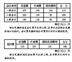 按照会议类别和规格,一类会议的合计费用标准最高,为510元/人·天;最低的三类会议,合计费用标准为380元/人·天。对于培训费,以5天以内(含5天)为例,合计380元/人·天。5天以上的培训,则须按照综合定额标准的75%(计285元)控制。这里所说的天数含报到时间和离开时间,报到时间和离开时间合计不得超过1天。