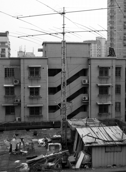 昨天下午,记者在中天大厦A幢楼下看到,四楼楼顶上,一座将近十米高的天线格外显眼。一名住户告诉记者,天线是三楼一名张姓住户在一年多前架起来的,具体什么用途她也不清楚,“听说可以用来和国外的人联系。”