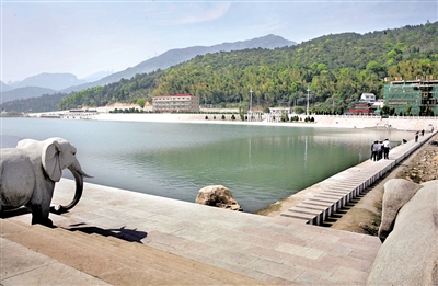 随后,芙蓉镇实施溪流基础设施建设和景观提升。拆出一块空地马上进场施工,防止垃圾回潮。这些工程都按高标准建造,比如,结合溪两岸污水收集系统,打造抗洪能力50年一遇的防洪堤;花费10多万元的景观石雕大象……