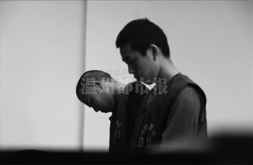 昨天下午2时30分许,身穿囚服的张某和王某被法警押上法庭被告席。