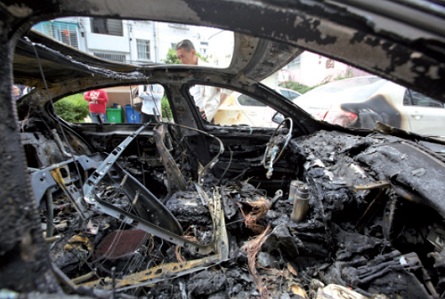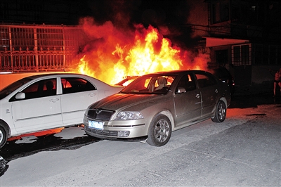 “我都睡着了,被像是放鞭炮的声音吵醒,起来一看,外面是车烧起来了。”昨天,在附近住的一位阿婆说,当时火苗蹿起来有两米多高,把一棵树的叶子都烧焦了。
