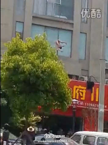 昨天下午1点多,温州经济技术开发区滨海六路发生一起悲剧:一名赤身裸体的男子从三楼楼顶坠下,不治身亡。坠楼全过程被现场群众拍下。记者从视频里看到,当时该男子准备往上攀爬,可能因体力透支坠楼。