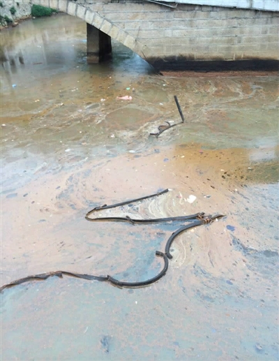 ①、永中街道东坦河河面污染严重