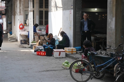 ①、宁城农贸市场周边无证设摊现象