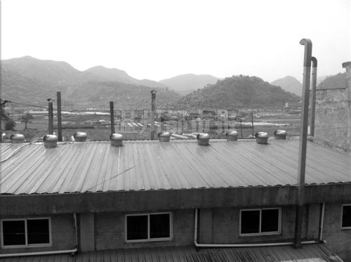 该厂南面是一片空阔地,其余三面紧挨着民房。站在附近一幢民房楼顶往下望,该厂共有6个烟囱和10个鼓风机穿过铁棚厂房,鼓风机正在高速运转,排放的臭气非常难闻。记者在楼顶拍照不到2分钟,就感到呼吸困难,立马退回屋内。