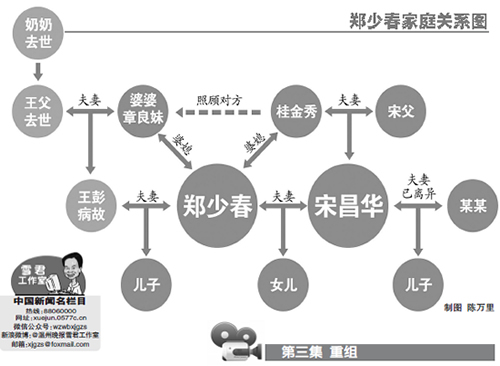 2008年,郑少春奶奶去世了,前年,郑少春原先的公公也走了。郑少春知道婆婆章良妹会寂寞,但她毕竟太忙,和宋昌华商量后,决定让他母亲桂金秀住到章良妹家里。