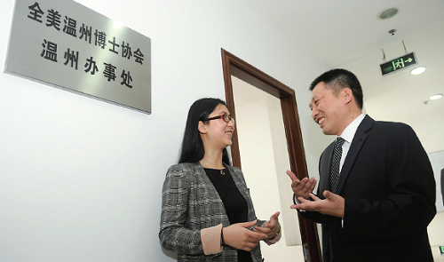 全美温州博士协会温州办事处的设立是鹿城区迎接智力回归的一个项目。鹿城区政府有关人士说,为该协会90多名博士会员在温州安了个“家”,主要用于双边信息发布、接收和相关人员、单位的联络,促进两地人才和项目交流,服务温州。