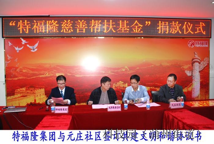 龙湾新闻网讯为了更好地加强龙湾区精神文明建设,创建平安和谐社区,弘扬中华民族扶贫济困的传统美德,承担企业回报社会的责任,体现慈善情暖万家的宗旨。最近,特福隆集团与温州市高新区科技园(蒲州街道)元庄社区结对,双方为共同创建文明和谐社区而达成协议。特福隆集团向龙湾区慈善总会捐资伍万元,设立了“特福隆慈善帮扶基金”,专款用在元庄社区实施扶贫帮困、资助弱势群体及开展社区公益性活动等项目。