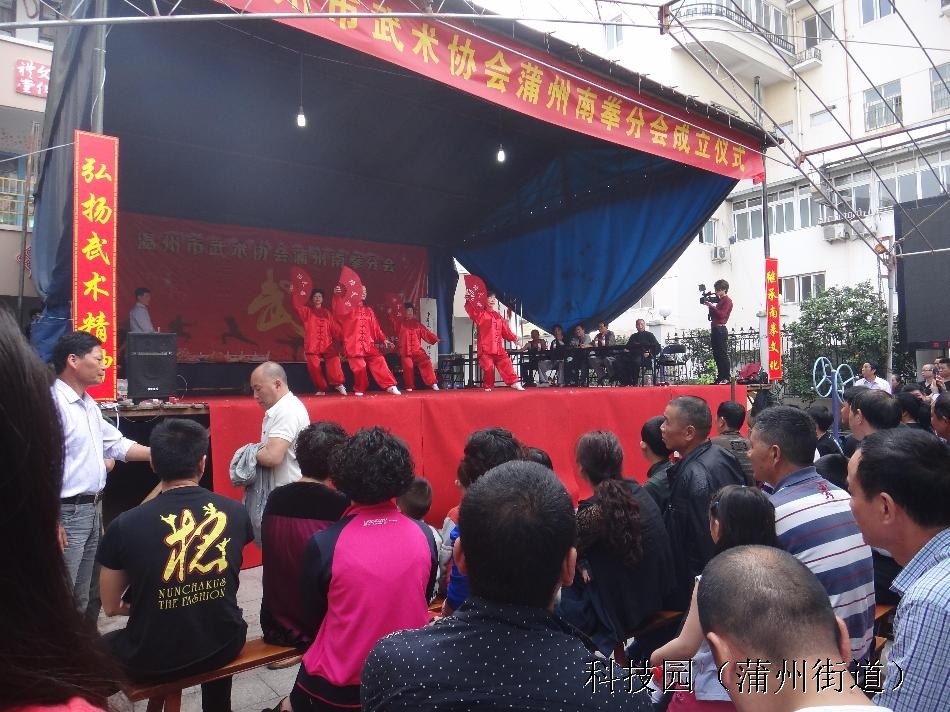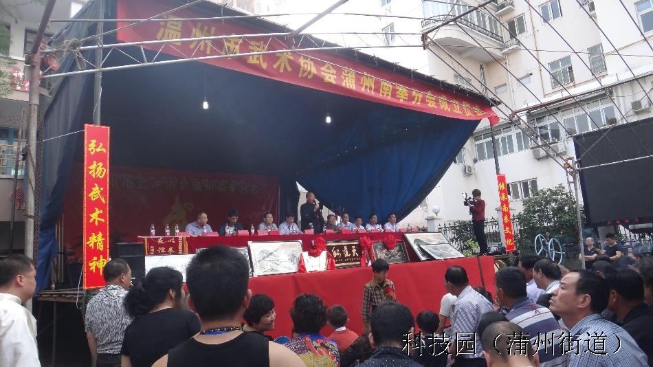 龙湾新闻网讯弘扬武术精神,继承南拳文化,温州市武术协会蒲州南拳分会于4月27日在蒲州街道蒲三社区江前村举行成立仪式,温州市武术协会书记王德光主持仪式,温州市武术协会副主席陈胜贤、高新区科技园管委会(蒲州街道办事处)副主任林光新、江前村书记黄爱光、蒲州街道南拳分会会长叶绍勤等人出席并在仪式上讲话。来自鹿城、龙湾、瓯海、经济技术开发区和永嘉等县区的14家南拳分会代表到场祝贺。随后进行授牌仪式的标志着蒲州南拳分会的正式成立。
