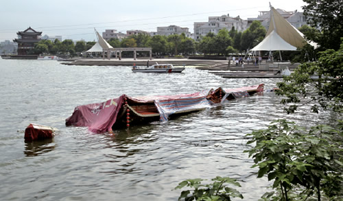 曹晓勇:这个我还不太清楚。去年5月14日台阁沉没,有人发现当时有多艘快艇经过停泊台阁的附近水域,大家猜测可能是大量湖水冲入台阁船舱导致,可至今没有调查结果。虽然前天晚上有下雨,但台阁在台风天都能安然度过,下雨对台阁应该说问题不大。