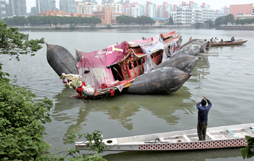 造价300万的温州台阁又沉了 去年打捞费花了12万