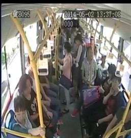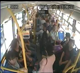 根据公交汽车上的监控视频显示,5月2日下午13时36分01秒,这名身着花衬衫和红色运动鞋的中年男子坐在202路公交车的第一排,旁边靠窗的位置上放着一个深蓝色的塑料袋。此时,车上的人渐渐多了起来。