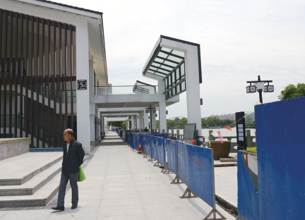 记者叶家佳核实:昨天上午,记者来到南塘街,看到街上确实如陈先生所说,有好几处地面处于开挖状态,旁边还有建筑施工防护栏挡住市民向河边靠近的步伐。
