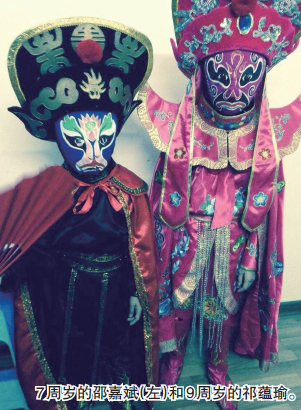 “去年暑假才开始学,这一个月也是紧锣密鼓地练习。”祁蕴瑜之前学过两年京剧,对戏曲一直很感兴趣,在听说老师还会“变脸”之后,第一时间就报了名,父母也都非常支持。邵嘉斌的妈妈也自豪地说,之前听小孩子唱戏总是会有老成的感觉,变脸则更像魔术,每天看着孩子乐在其中,也觉得很有趣。当问及学变脸累不累时,两个孩子都摇着头,异口同声地回答:“不辛苦,可好玩了”。