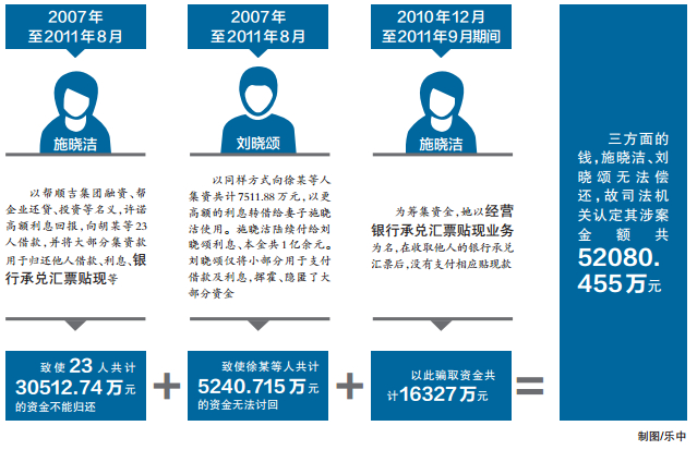 永嘉80后女青年施晓洁与丈夫刘晓颂诈骗非法集资,致5亿余元财产不能归还。3月18日,经温州市检察院提起公诉,温州市中院对该案作出一审宣判,以集资诈骗罪,分别判处被告人施晓洁和刘晓颂死刑缓期二年执行和有期徒刑十二年。施晓洁目前已经向省高院提出上诉。