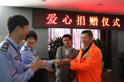 昨天,在蒲州派出所“圆梦爱心募捐仪式”现场,10多家企业和天鹅湖社区代表慷慨解囊,为龙湾黄河清洁公司安徽籍清洁工孙玉金及其收养的“娃子”募捐手术费1.8万元。据悉,孙老伯今年68岁,十年前,他在温州农业示范区(今温州高新区科技园)飞云江路作业时,收养了一名流浪哑巴少年。10多年来,省吃俭用照顾孩子,并为治疗其肌肉萎缩的左手而奔波。
