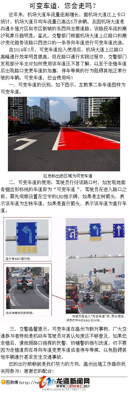 可变车道,您会走吗?自从机场大道上江路口可变车道投入使用后,交警部门发现部分车主对如何使用该车道还不甚了解,以至于走错车道。现在,小编带来了详解大图为大家答疑,各位驾驶员可要好好学习哦。