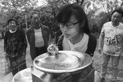 昨天上午,市民在马鞍池公园体验直饮水设备。