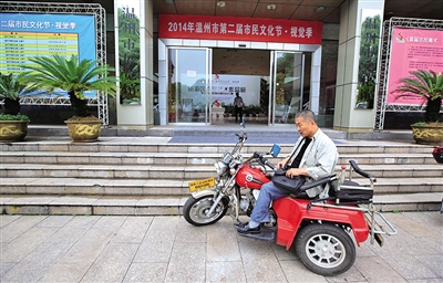 陈林华今年60岁,是一位腿脚不便的肢残朋友。平日里,一辆残疾人专用机动车和一根可折叠拐棍是他的出行保障。对于温州市区公共场所无障碍设施的现状,他觉得并不满意。