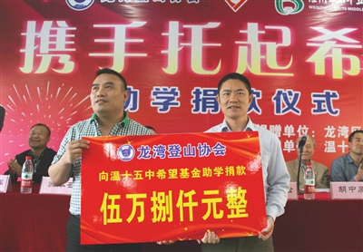 龙湾新闻网讯 近日,由区登山协会和温十五中联合举办的“携手托起希望”助学捐款仪式在温十五中举行。