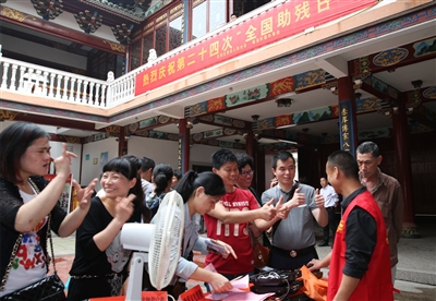 日前,区残联组织表演队伍到瑶溪街道南洋社区进行演出,慰问当地的残疾人。活动现场,除了精彩的文艺表演外,还免费为辖区残疾人提供了法律咨询、科技助残、盲人按摩、送医送药等活动。在助残家电维修处,义工朱邦武帮助残疾人维修好了电器,他们也送出了代表感谢的“大拇指”。