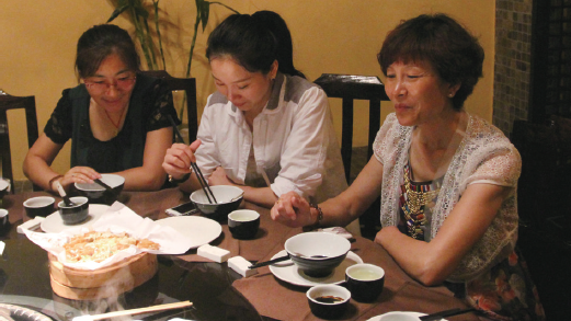 一家人吃饭时,翁女士特意让生母和养母分别坐在自己两侧,不停地为两位妈妈夹菜。席间,蔡娟娟说,生父生母不能忘,养父养母更不能忘。