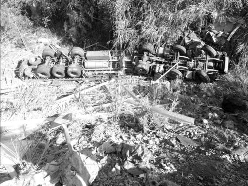 此路段事故原因多为:大型载重货运车辆通过连续下坡的刹车,造成刹车系统发热失灵,通过急弯路时在离心力的作用下翻车。