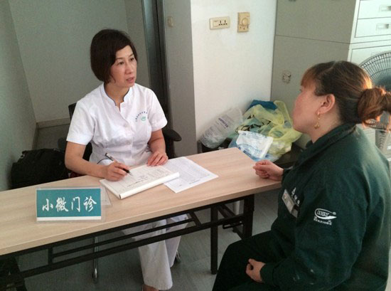 检查现场,“小微门诊’的医师热情认真地为每一位员工检查诊治,对查出疾病的妇女治疗建议、用药指导和咨询服务。工作人员向企业女员工宣传优生优育、“两免”政策、免费发放避孕药具,对企业女员工提出的一些生殖健康、避孕、优生优育等问题耐心回答。