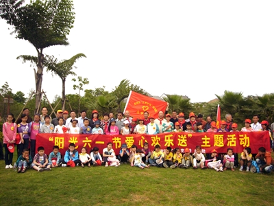 图为永中街道“五老护苗”志愿中队队员及其结对儿童开展“阳光六一节爱心欢乐送”主题活动